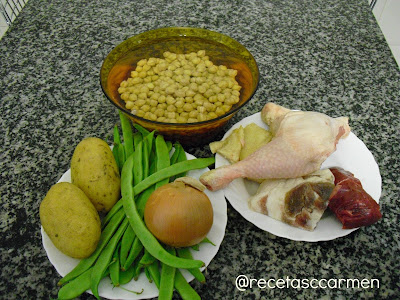 Aunque todavía hace calor, las primeras lluvias me han recordado esos "cociditos"tan ricos de cuando era niña. Pues bien he parado el tiempo, he aparcado la hora de entrada y salida laboral, hoy puedo hacerlo porque es sábado y he regresado a unos cincuenta años atrás, me dispongo a preparar un cocido, como lo hacia mi abuela.