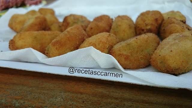 Dejar en una bandeja plana hasta el día siguiente en la nevera.Ir formando las croquetas pasando por huevo y pan rallado.Freír en abundante AOVE.
