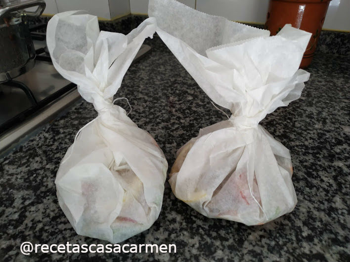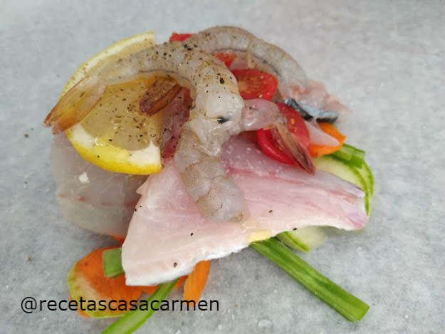 Lavar y cortar las verduras, si fuera necesario utilizar una mandolina. Quitar las espinas de la dorada y cortarla en tres trozos.